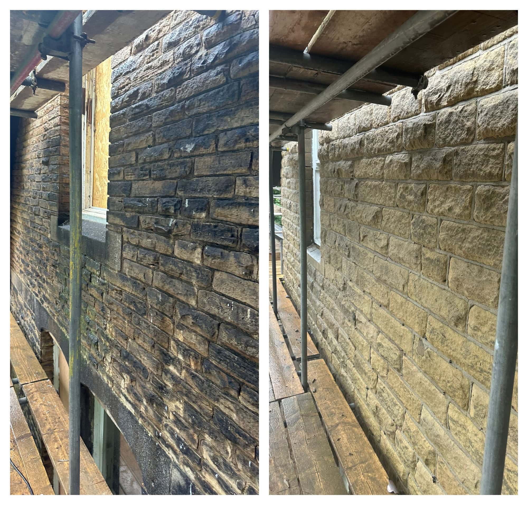 The building was totally transformed! The clean removed all the debris and staining revealing a the original stone colour, totally refreshing the look of the property. The owners and occupiers were delighted.