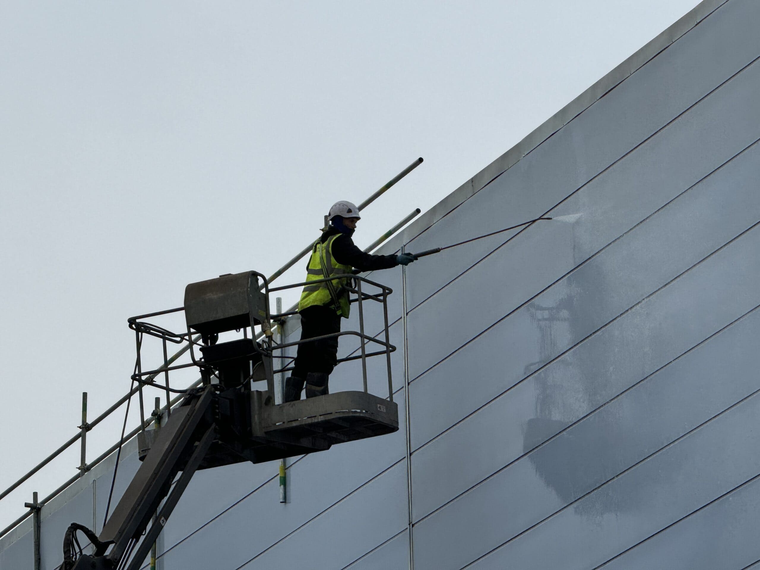 We carried out a comprehensive deep clean of the entire exterior structure, removing accumulated grime, organic build‑up, and airborne pollutants from the cladding to restore the façade and perimeter to a pristine condition.